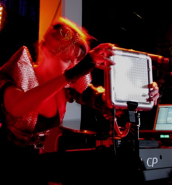 As the lights went down, she arrived on stage to a rapturous welcome completely solo and wearing a glamourous gold shoulder pad outfit. Wonderfully kooky, she slightly lost her footing as she stepped towards her ‘Big Machine’ but then kicked off her heels and opened with a bleepy sound collage before launching into ‘The Devil At My Door’. As well as her keyboard, laptop and a variety of synths, Emilie is accompanied by her faithful Yamaha Tenorion and an amazing effects gauntlet on her arm to provide all manner of echoes, phasing and distortion.
